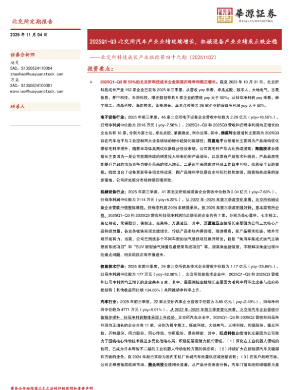 【华源证券】【202511】2025Q1-Q3北交所汽车产业业绩延续增长,机械设备产业业绩或止跌企稳-22页 证券期货研究报告
