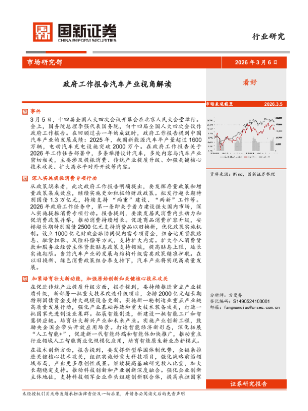 【国新证券】【2026】政府工作报告汽车产业视角解读-3页 证券期货研究报告