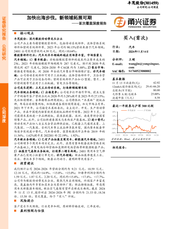 【甬兴证券】【20241114】丰茂股份(301459)首次覆盖深度报告:加快出海步伐,新领域拓展可期-27页 行业研究