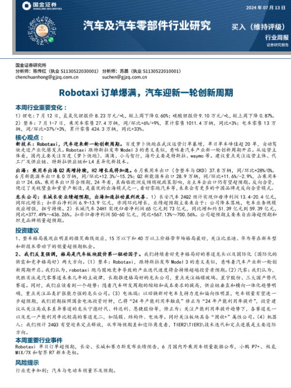 【国金证券】【20240713】汽车及汽车零部件行业研究:Robotaxi订单爆满,汽车迎新一轮创新周期-17页 行业研究