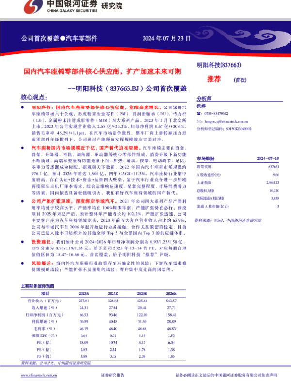 【银河证券】【20240723】国内汽车座椅零部件核心供应商,扩产加速未来可期-14页 行业研究