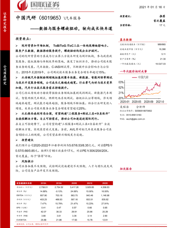 【国联证券】【20210116】中国汽研(601965)— 数据与服务螺旋驱动,驶向成长快车道-30页 行业研究