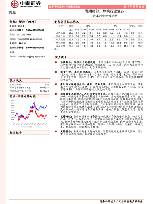 【中泰证券】【20190906】汽车行业中报总结:周期底部,静候行业复苏-20页 行业研究