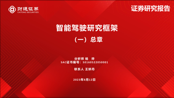【财通证券】【20230812】汽车行业智能驾驶研究框架:(一)总章-24页 行业研究