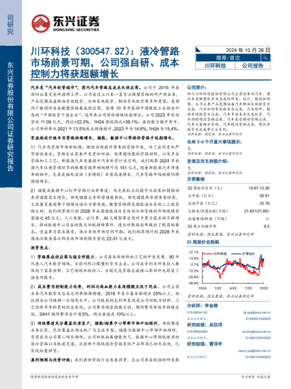 【东兴证券】【20241028】川环科技(300547)液冷管路市场前景可期,公司强自研、成本控制力将获超额增长-27页 行业研究