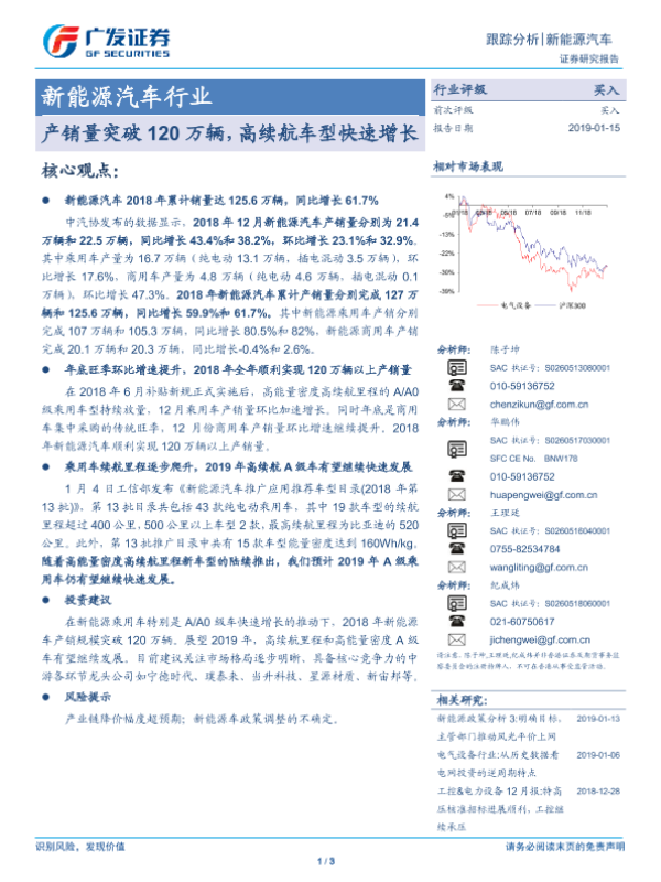 【广发证券】【20190115】新能源汽车行业跟踪分析:产销量突破120万辆,高续航车型快速增长-3页 行业研究