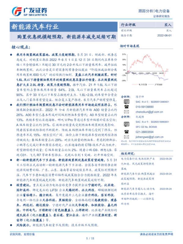 【广发证券】【20220601】新能源汽车行业跟踪分析:购置优惠规模超预期,新能源车减免延续可期-11页 行业研究