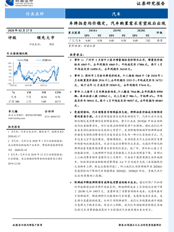 【财信证券】【20200227】车牌拍卖均价稳定,汽车购置需求有望延后出现-3页 行业研究
