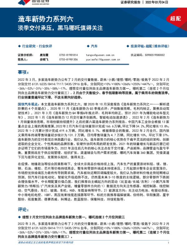 【国信证券】【20220304】造车新势力系列六-淡季交付承压,黑马哪吒值得关注-12页 行业研究