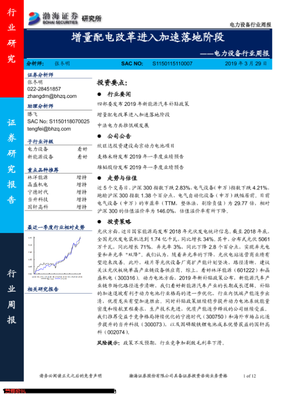 【渤海证券】【20190329】电力设备行业周报:增量配电改革进入加速落地阶段-12页 行业研究