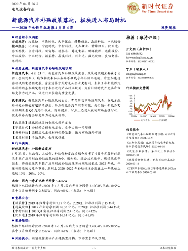 【新时代证券】【20200426】2020年电新行业周报4月第4期:新能源汽车补贴政策落地,板块进入布局时机-14页 行业研究