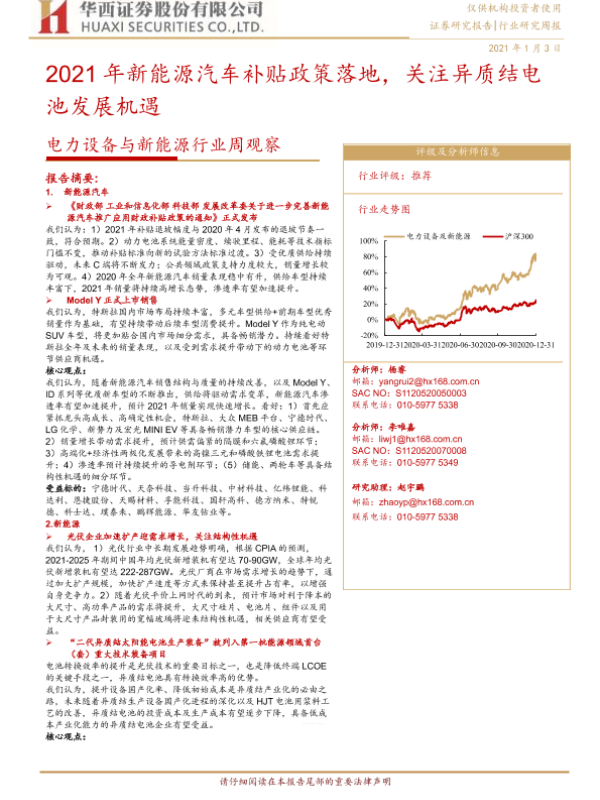 【华西证券】【20210103】2021年新能源汽车补贴政策落地,关注异质结电池发展机遇-19页 行业研究