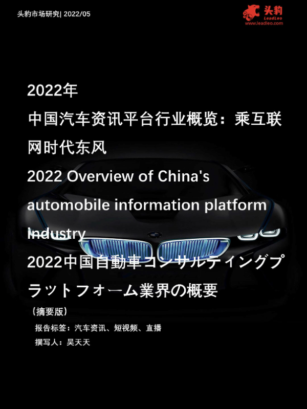 【头豹研究院】【2022】2022年中国汽车资讯平台行业概览:乘互联网时代东风(摘要版)-9页 行业研究