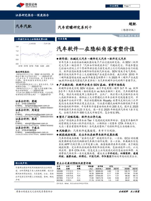 【国信证券】【20200816】汽车前瞻研究系列十:汽车软件—在隐秘角落重塑价值-31页 行业研究