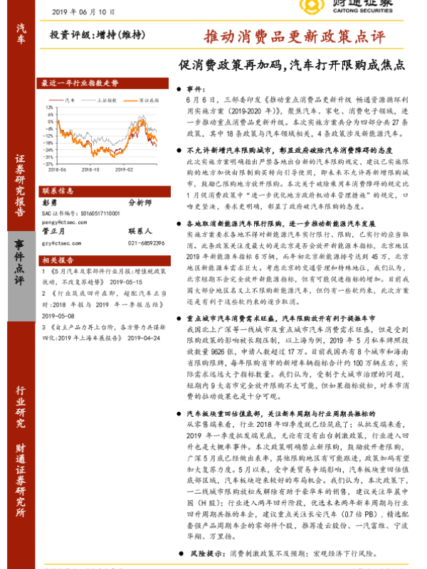 【财通证券】【20190610】推动消费品更新政策点评:促消费政策再加码,汽车打开限购成焦点-8页 行业研究