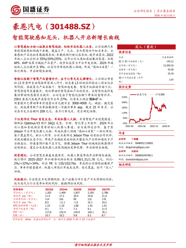 【国盛证券】【202602】智能驾驶感知龙头,机器人开启新增长曲线-31页 证券期货研究报告