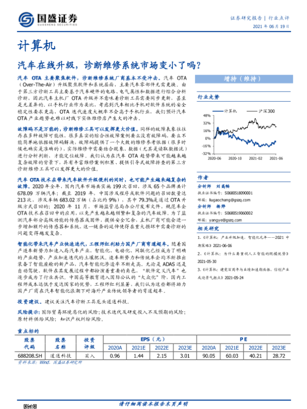 【国盛证券】【20210619】汽车在线升级,诊断维修系统市场变小了吗?-11页 行业研究