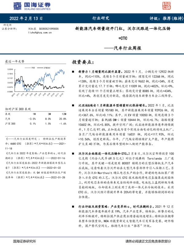 【国海证券】【20220213】新能源汽车销量迎开门红,沃尔沃跟进一体化压铸+CTC-24页 行业研究