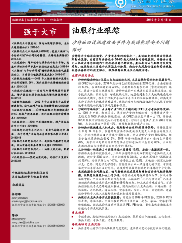 【中银证券】【20190915】油服行业跟踪:沙特油田设施遭攻击事件与我国能源安全问题探讨-6页 行业研究