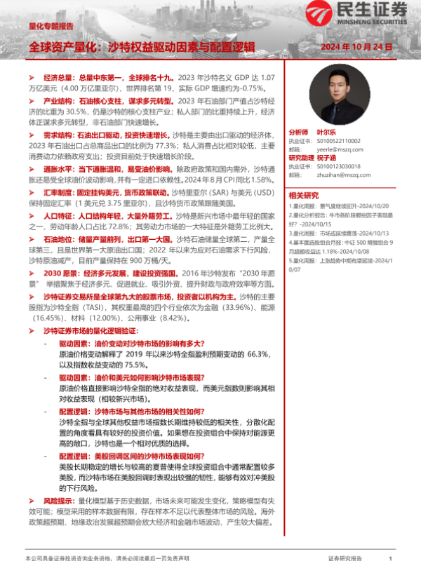 【民生证券】【20241024】全球资产量化:沙特权益驱动因素与配置逻辑-34页 行业研究