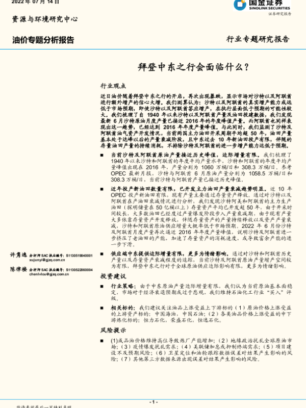 【国金证券】【20220714】油价专题分析报告:拜登中东之行会面临什么?-11页 行业研究