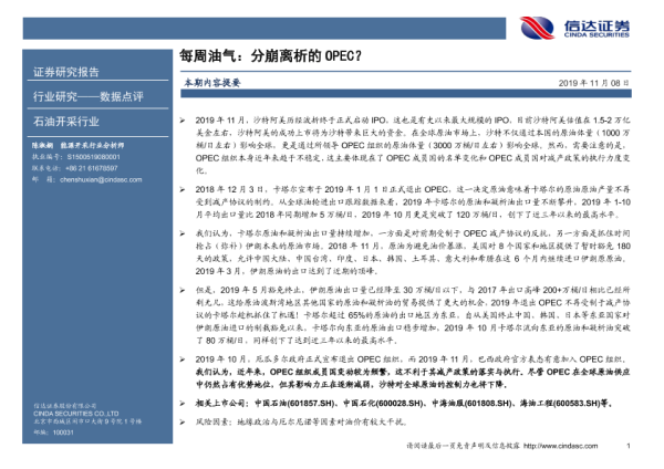 【信达证券】【20191108】每周油气:分崩离析的OPEC?-5页 行业研究