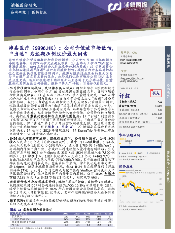 【浦银国际】【20240910】沛嘉医疗(9996.HK)公司价值被市场低估,“出通”为短期压制股价最大因素-11页 行业研究