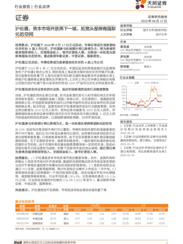 【天风证券】【20190617】沪伦通:资本市场开放再下一城,拓宽头部券商国际化的空间-2页 行业研究