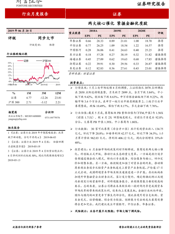 【财信证券】【20190620】证券行业月度报告:两大核心催化 紧握金融优质股-10页 行业研究