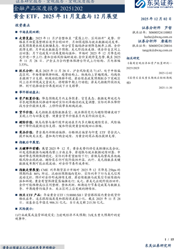 【东吴证券】【202512】黄金 ETF,2025年 11月复盘与 12月展望-15页 证券期货研究报告