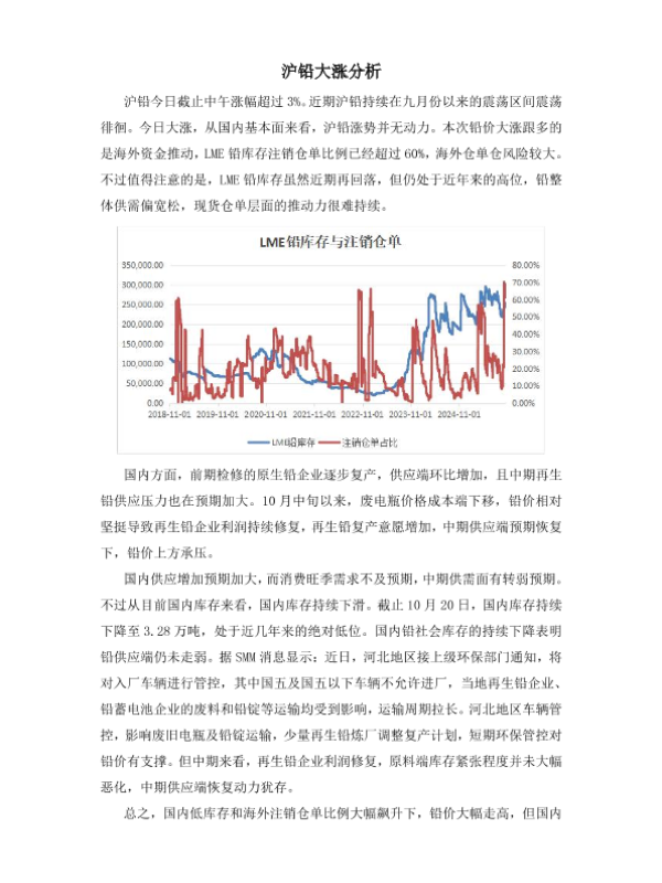【苏豪弘业期货股份有限公司】【202310】沪铅大涨分析-3页 证券期货研究报告