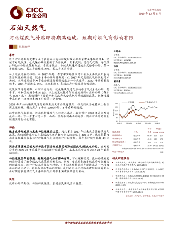 【中金公司】【20191205】河北煤改气补贴即将期满退坡,短期对燃气商影响有限-5页 行业研究