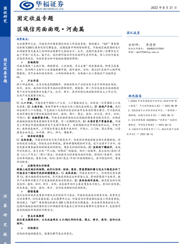 【华福证券】【20220821】固定收益专题:区域信用面面观·河南篇-28页 行业研究