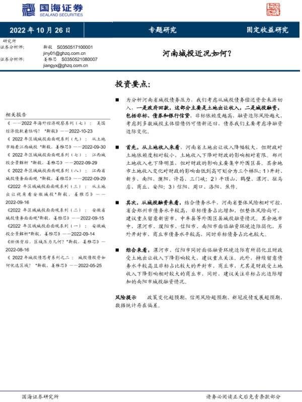 【国海证券】【20221026】专题研究:河南城投近况如何?-15页 行业研究