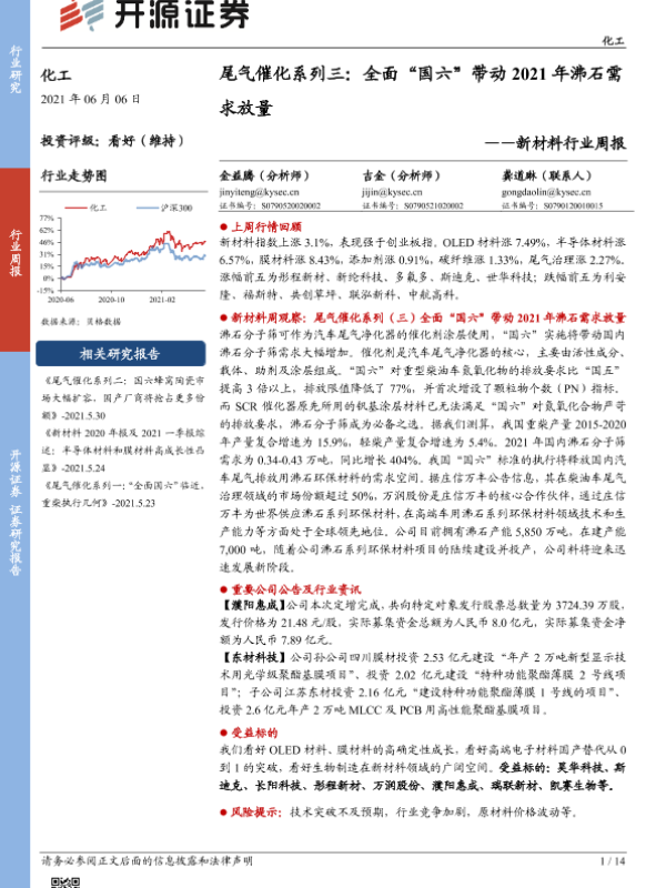 【开源证券】【20210606】尾气催化系列三:全面“国六”带动2021年沸石需求放量-14页 行业研究