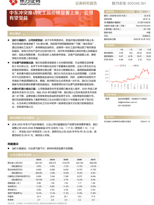 【东方证券】【202603】中东冲突推动化工品价格显著上涨,公司有望受益-5页 证券期货研究报告