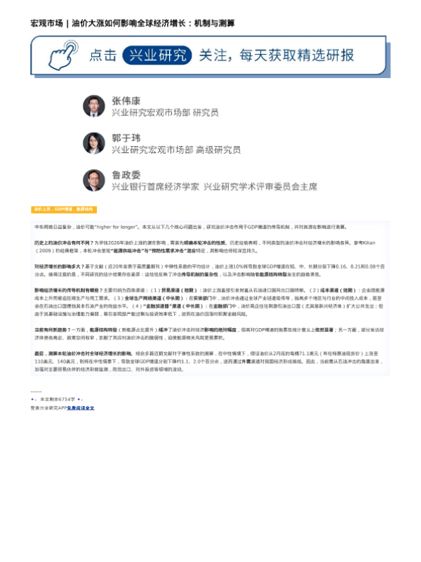 【兴业研究】【202603】油价大涨如何影响全球经济增长:机制与测算-4页 证券期货研究报告