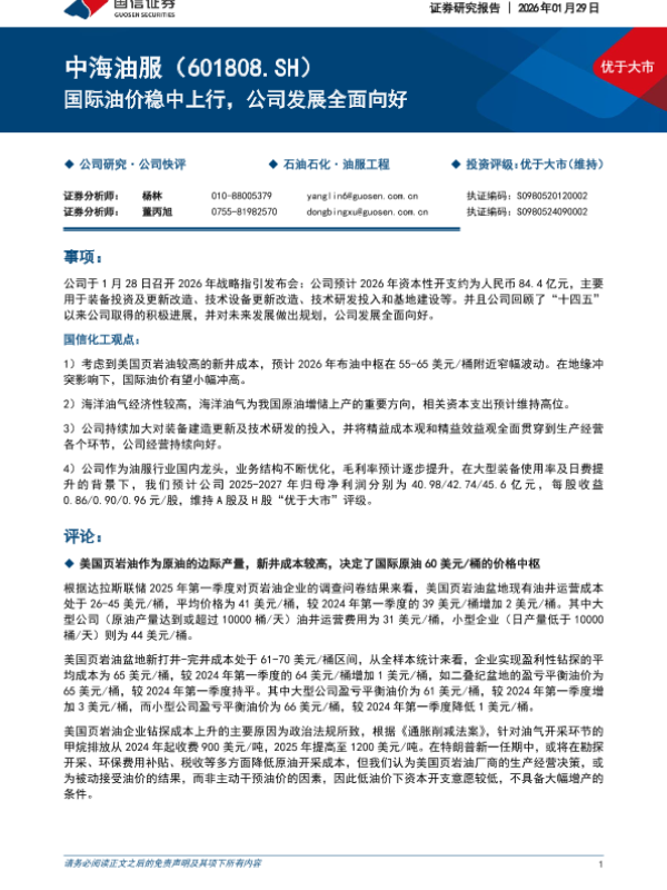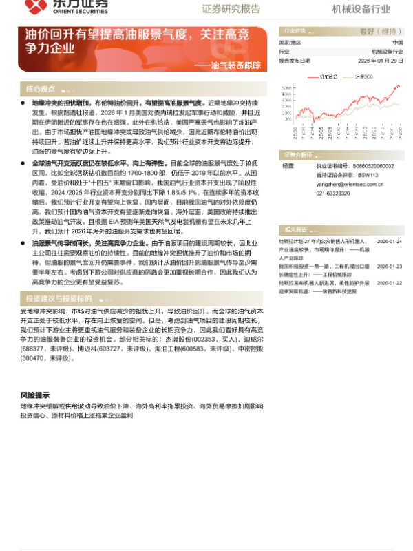 【东方证券】【202601】油价回升有望提高油服景气度,关注高竞争力企业-5页 证券期货研究报告