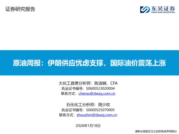 【东吴证券】【202601】原油周报:伊朗供应忧虑支撑,国际油价震荡上涨-59页 证券期货研究报告