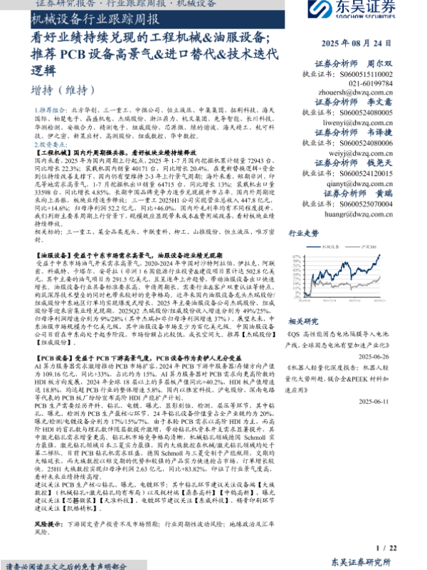 【东吴证券】【20250831】PCB设备高景气投资机会-推荐业绩兑现低估值高增速的工程机械-23页 证券期货研究报告