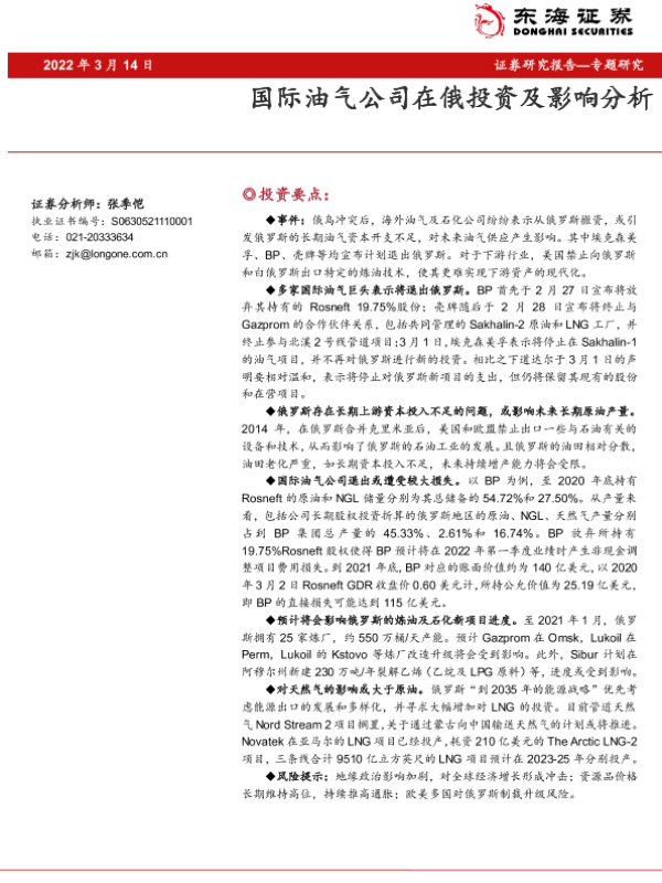 【东海证券】【20220314】国际油气公司在俄投资及影响分析-21页 行业研究