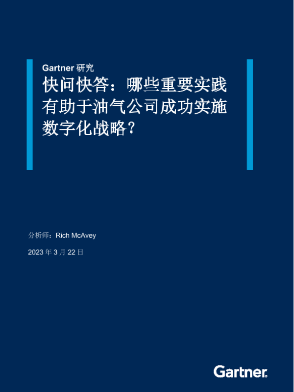 【Gartner】【20230322】快问快答:哪些重要实践有助于油气公司成功实施数字化战略?-10页 行业研究