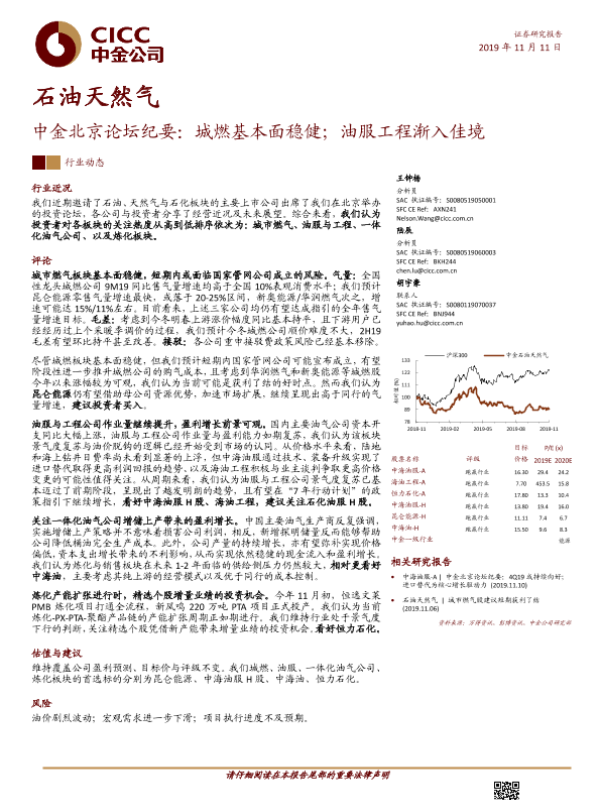 【中金公司】【20191111】中金北京论坛纪要:城燃基本面稳健;油服工程渐入佳境-8页 会议纪要