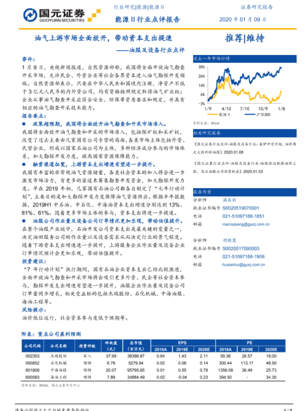 【国元证券】【20200109】油气上游市场全面放开,带动资本支出提速——油服及设备行业点评-2页 行业研究