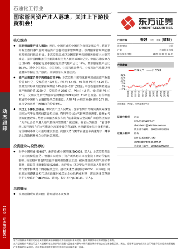 【东方证券】【20200724】石油化工行业:国家管网资产注入落地,关注上下游投资机会!-4页 行业研究