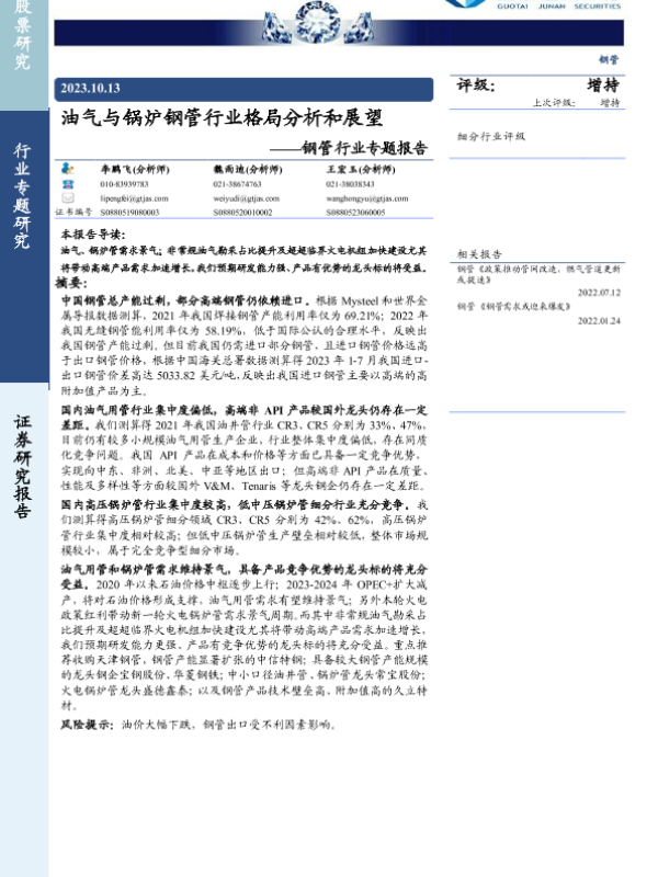【国泰君安证券】【20231013】油气与锅炉钢管行业格局分析和展望-32页 行业研究