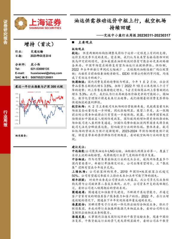 【上海证券】【20230324】交运中小盘行业周报:油运供需推动运价中枢上行,航空机场持续回暖-17页 行业研究