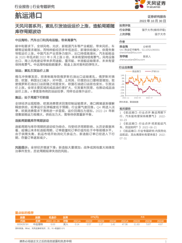 【天风证券】【20221030】航运港口天风问答系列:紊乱引发油运运价上涨,造船周期随库存周期波动-14页 行业研究