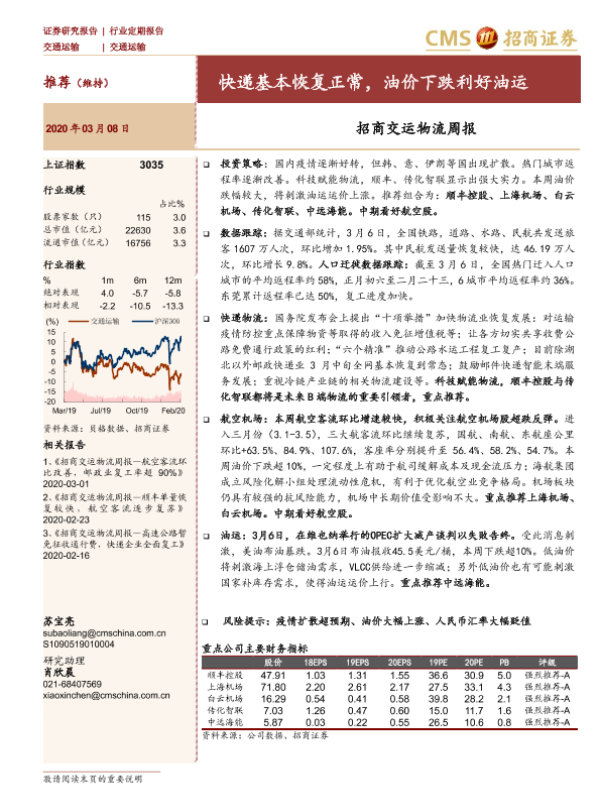 【海通证券】【20200308】招商交运物流周报:快递基本恢复正常,油价下跌利好油运-28页 行业研究