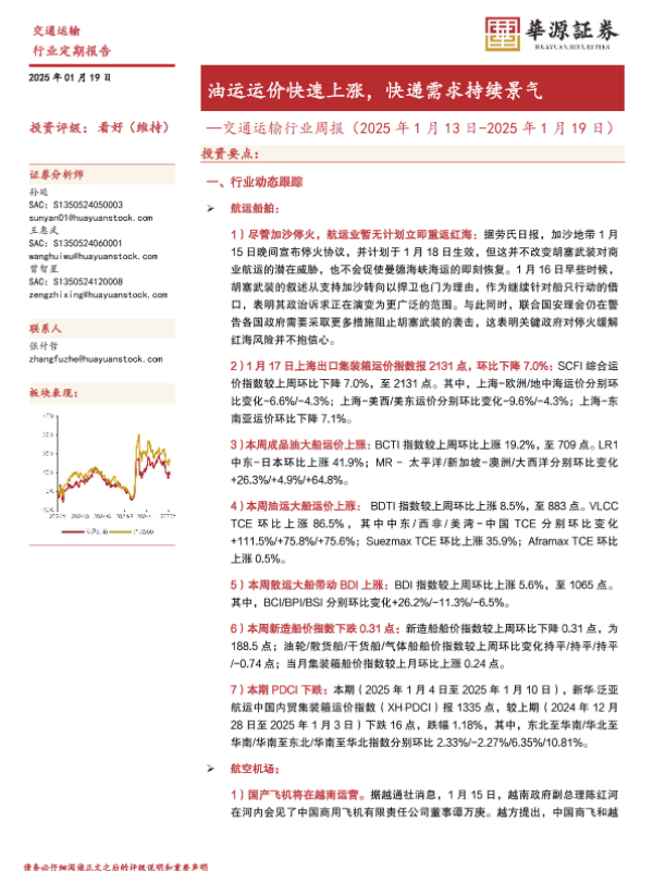 【华源证券】【20250119】交通运输行业周报:油运运价快速上涨,快递需求持续景气-16页 行业研究